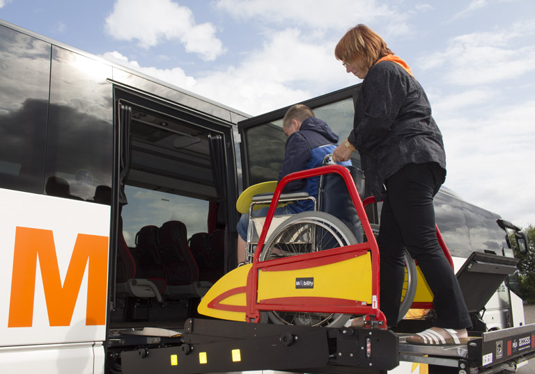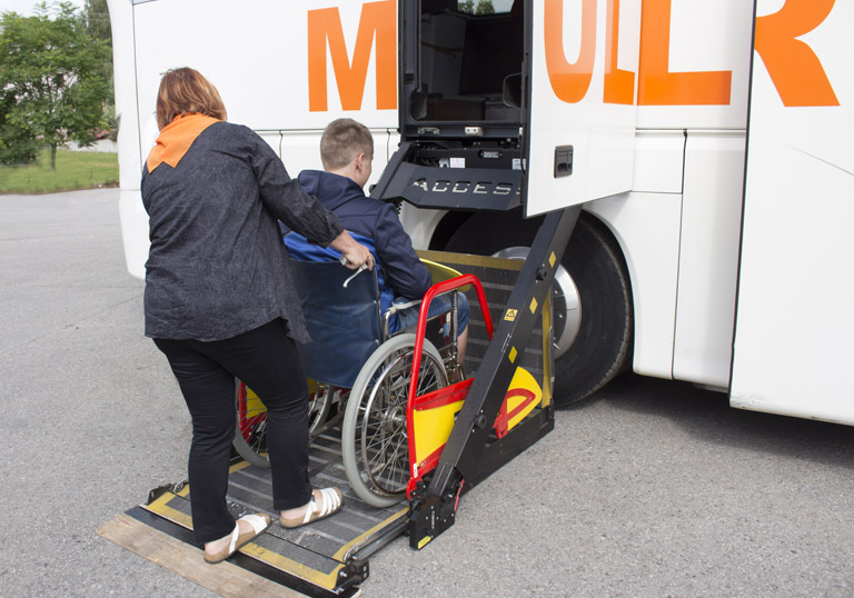 Rollibus Ansicht mit Hebelift für Rollstuhlfahrer(innen)